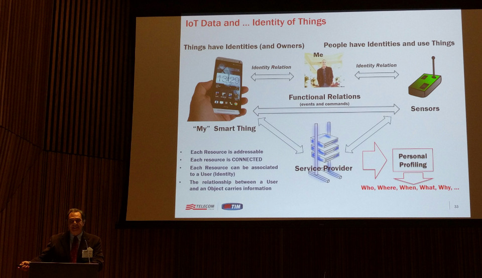 At the second IEEE World Forum on the Internet of Things in Milan, Italy, Roberto Minerva of Telecom Italia gave a keynote speech covering everything IoT from the perspective of a telecom operator. Among the topics discussed was the inevitable question of “control of data”. Who should control your personal data? How should your personal data be used? Telecom Italia surveyed Italian families concerning whether they’d accept information from within their household to be shared, and the answer, unsurprisingly, was a resounding NO!