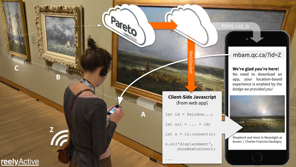 That was before the iBeacon, and our solution, in the case of a museum, was to provide guests with a badge (equivalent to a beacon) and invite them to experience real-time location-based digital content on the Web, either through their own mobile device or a provided tablet. We helped create exactly this experience at the MuseoMix Montréal hackathon in 2014, which participants loved: