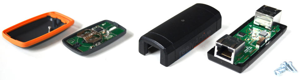 Case in point (pun intended, of course), the first generation of hardware we built at reelyActive in 2012: both our active RFID tag and reelceiver were designed around off-the-shelf enclosures from OKW Enclosures (MINITEC) and New Age Enclosures (3 inch Dongle) respectively. These were economically sound decisions as much then as they are today with all the units we’ve produced to date. And our customers enjoy the benefit and freedom of customising the enclosures (colour, form factor, etc.) either with our help or directly with the enclosure vendor.