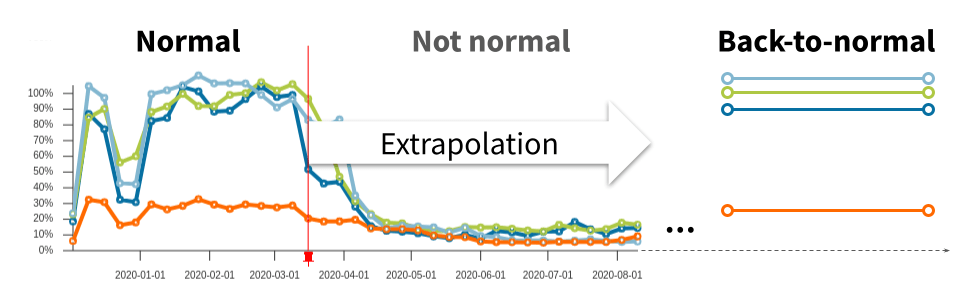 For example, the time series below illustrates the pioneering Industry 4.1 concept of using the advanced machine-learning (ML) technique of “extrapolation” to extend what was “normal” in Q1 2020 over the “not normal” pandemic year to establish precisely what “back-to-normal” will be.