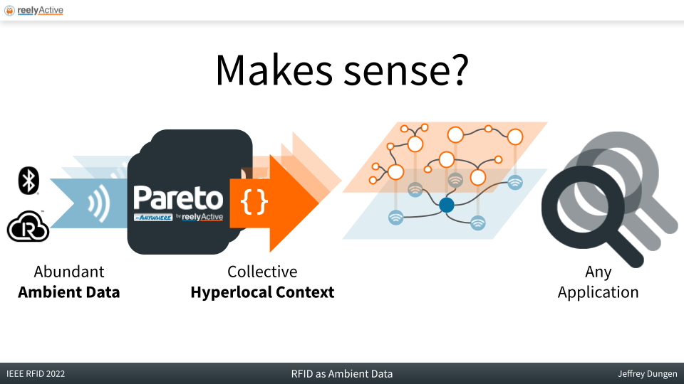 Last week we attended RFID Journal Live 2022 and the co-hosted IEEE RFID conference on the eve of our tenth anniversary, and we proudly argued, in the tutorial that we presented, that RFID has become ambient data, with over 100 billion standard, radio-identifiable devices present throughout the spaces in which we live, work and play. Today we are solving a middleware problem: facilitating interoperability across vendors and technologies so that any motivated developer can assemble off-the-shelf parts into a solution.